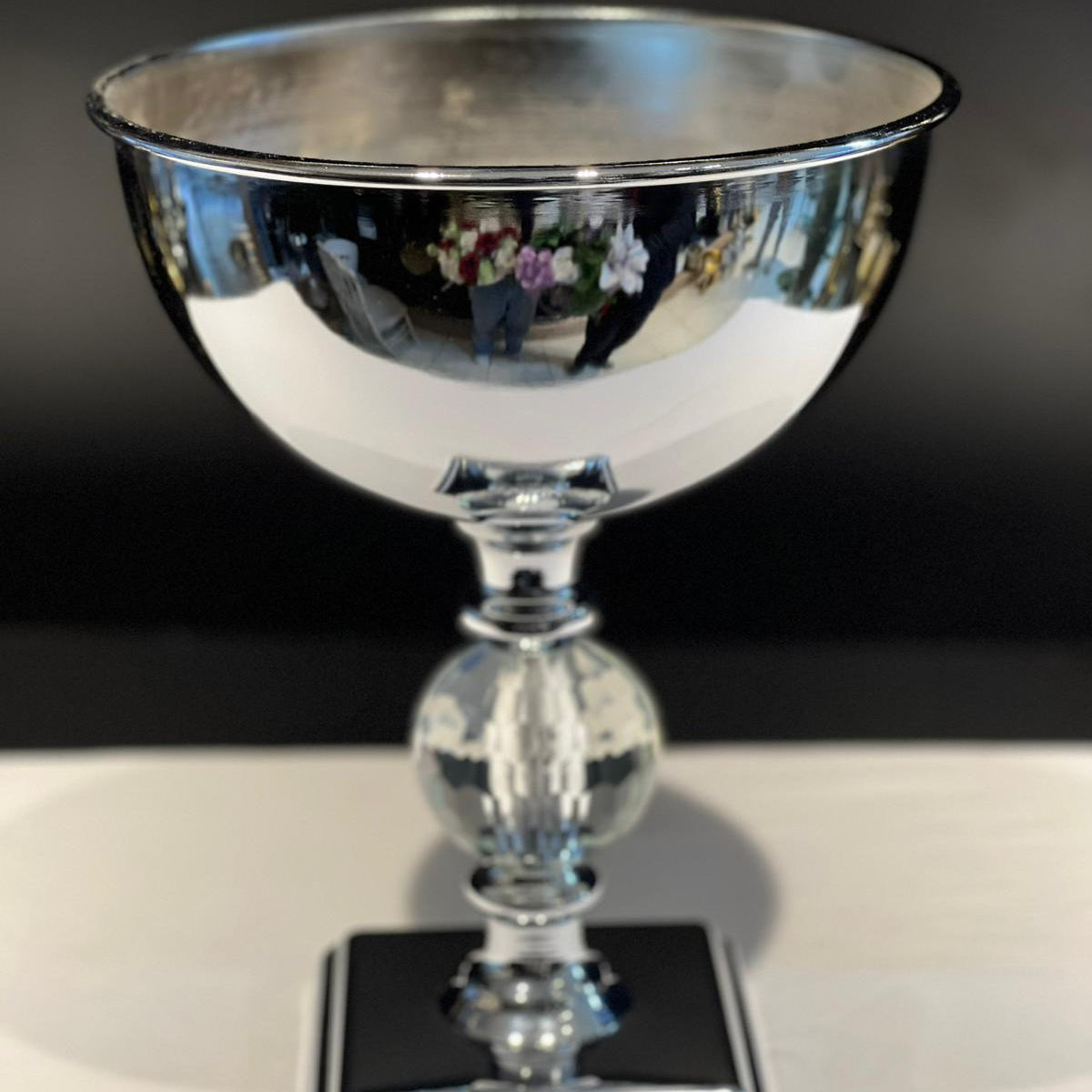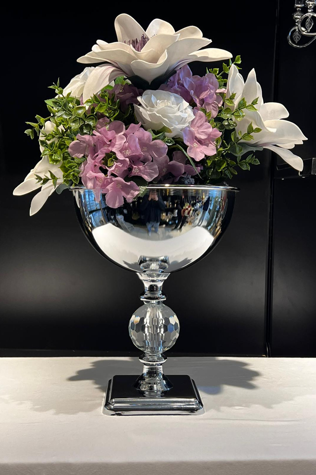 Kristal Küre Detaylı Gümüş Lüks Vazo