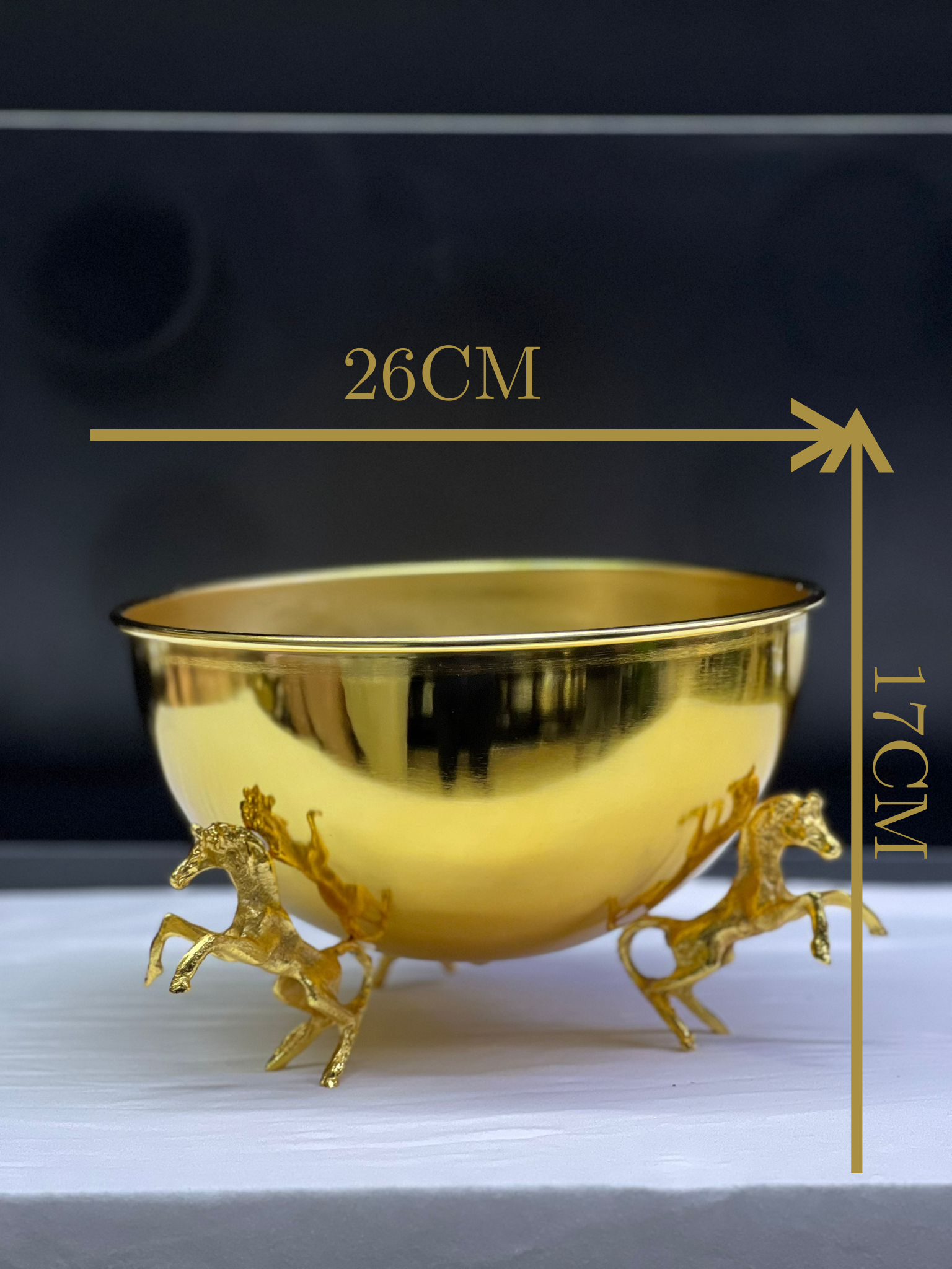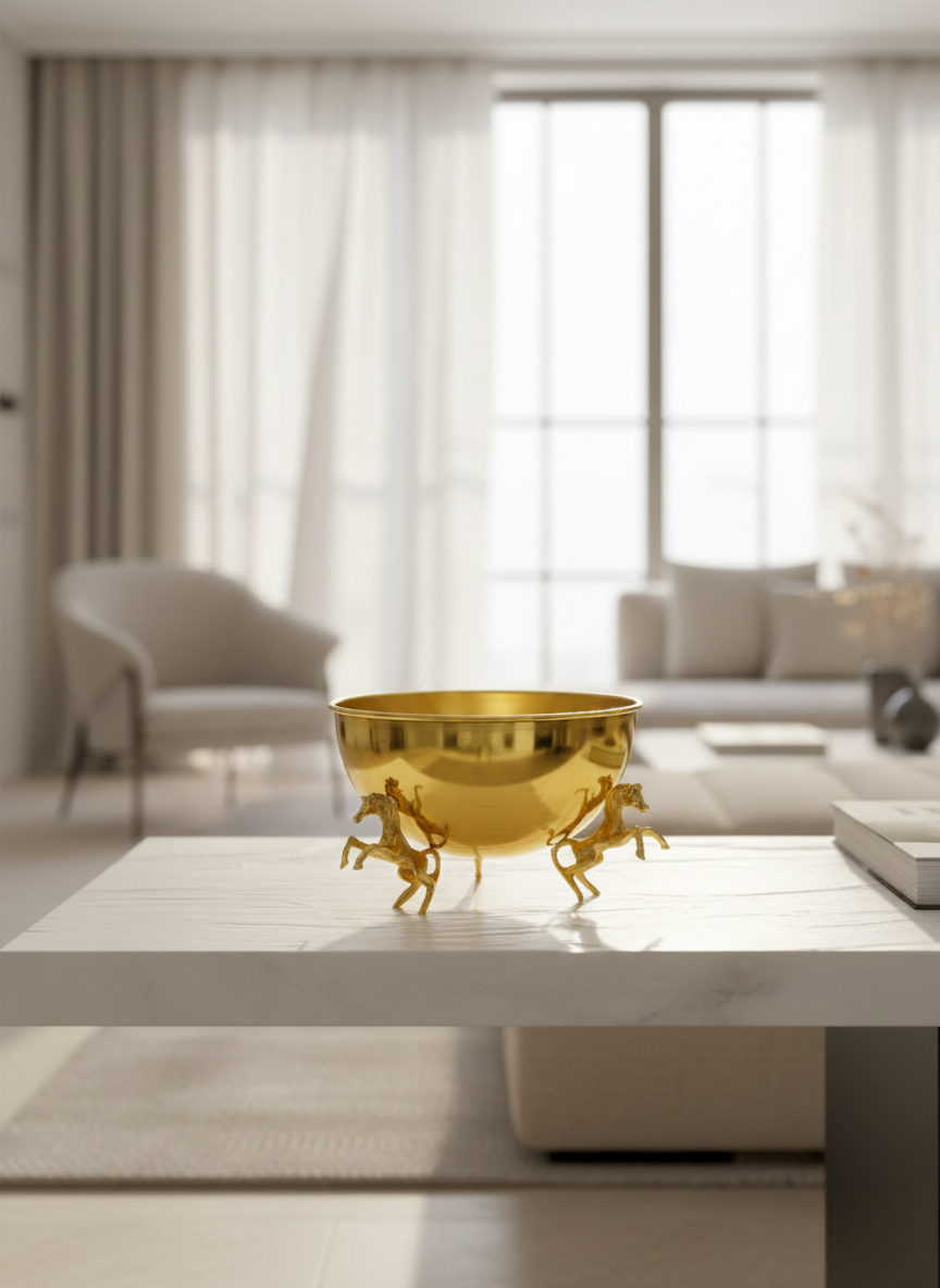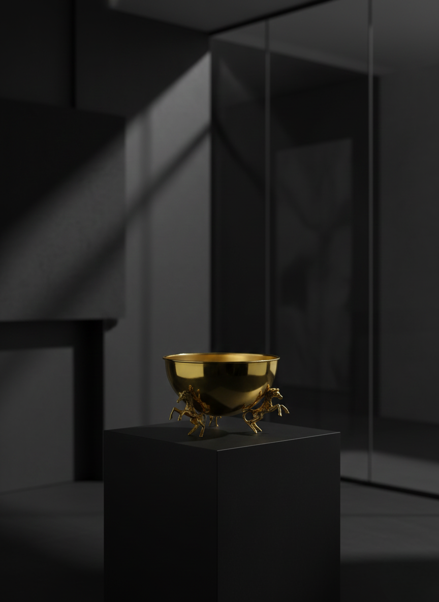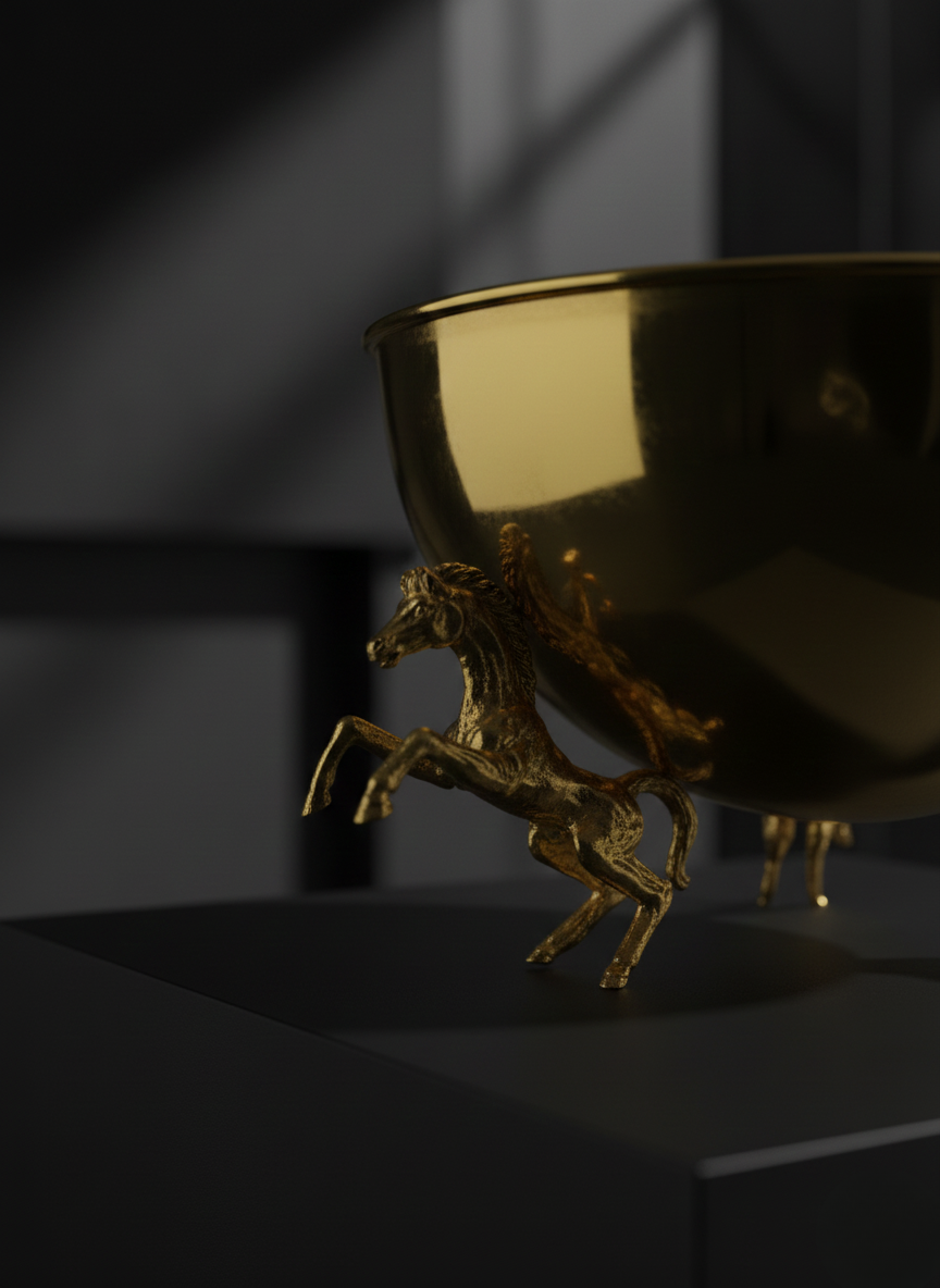 VAZO DEKOR Altın Kaplama Şaha Kalkan At Figürlü Dekoratif Sunum Kasesi ve VAZO