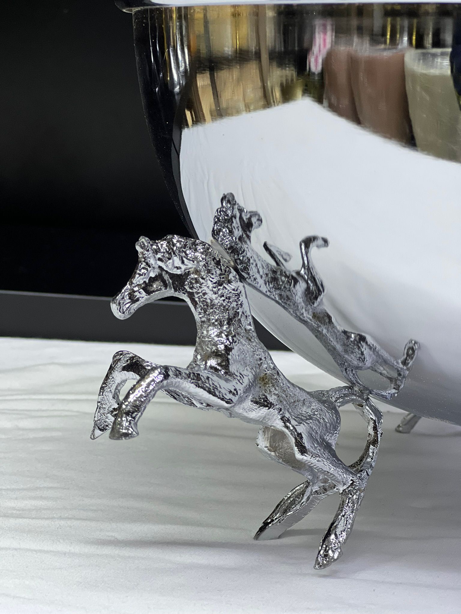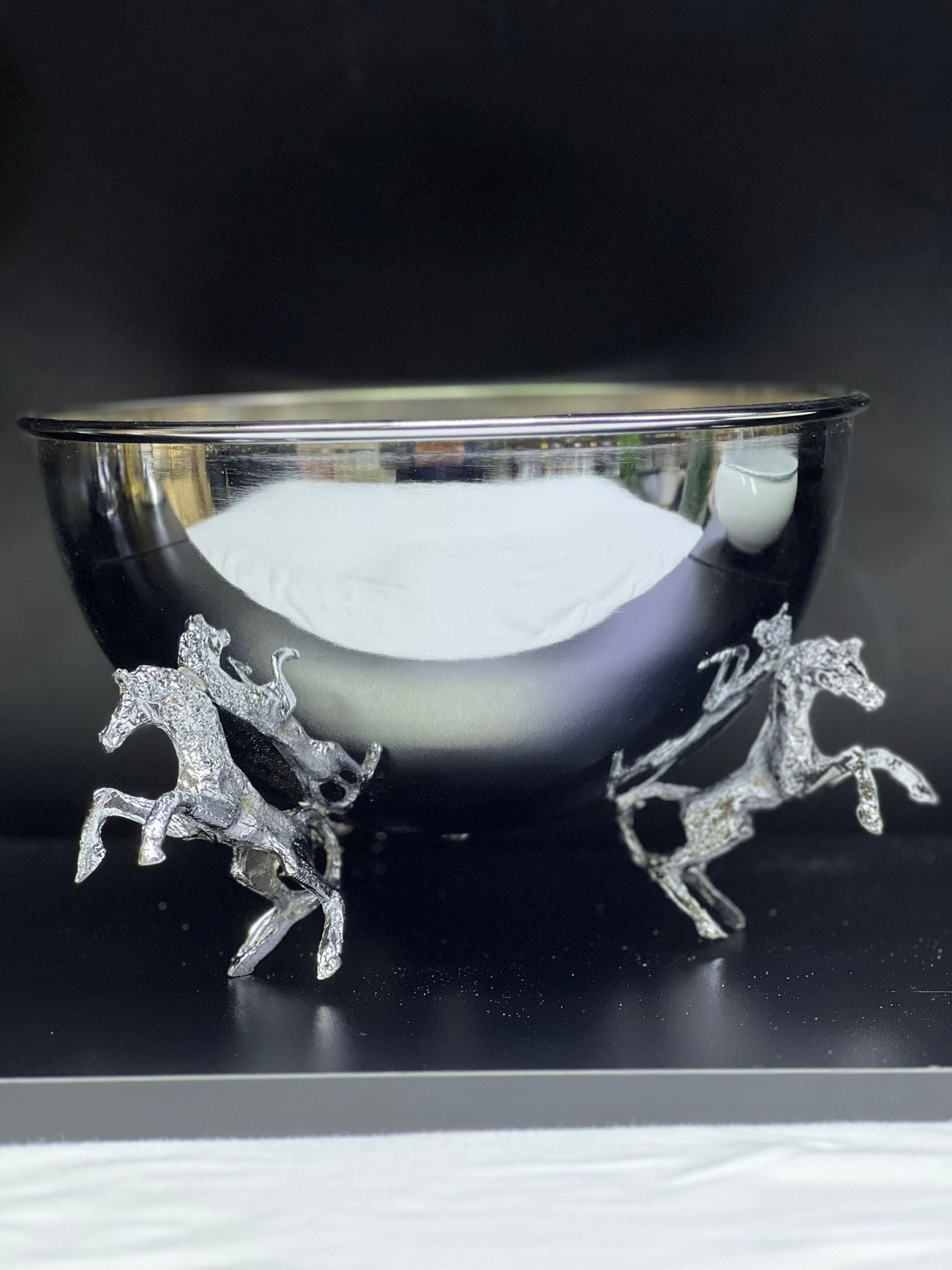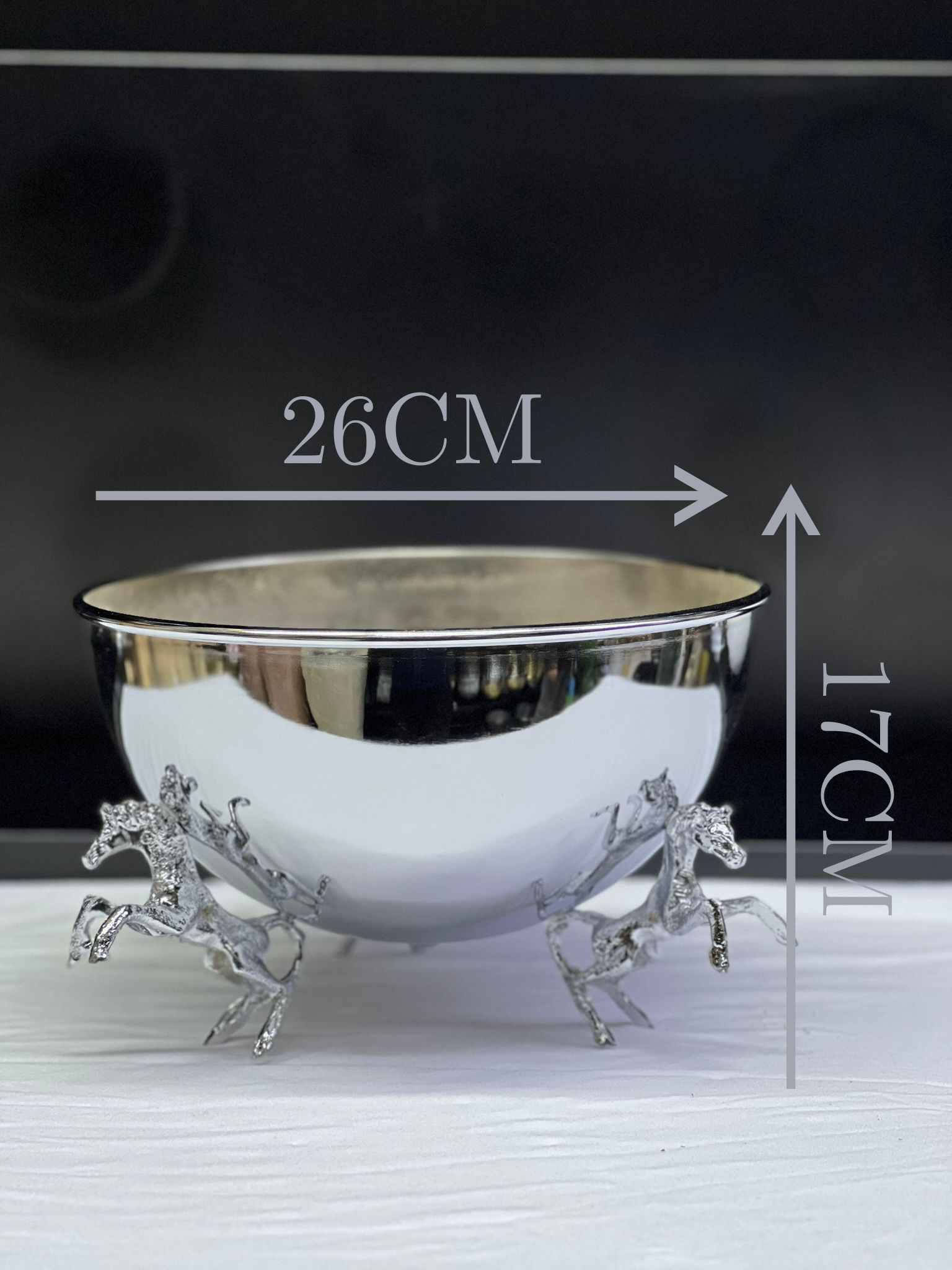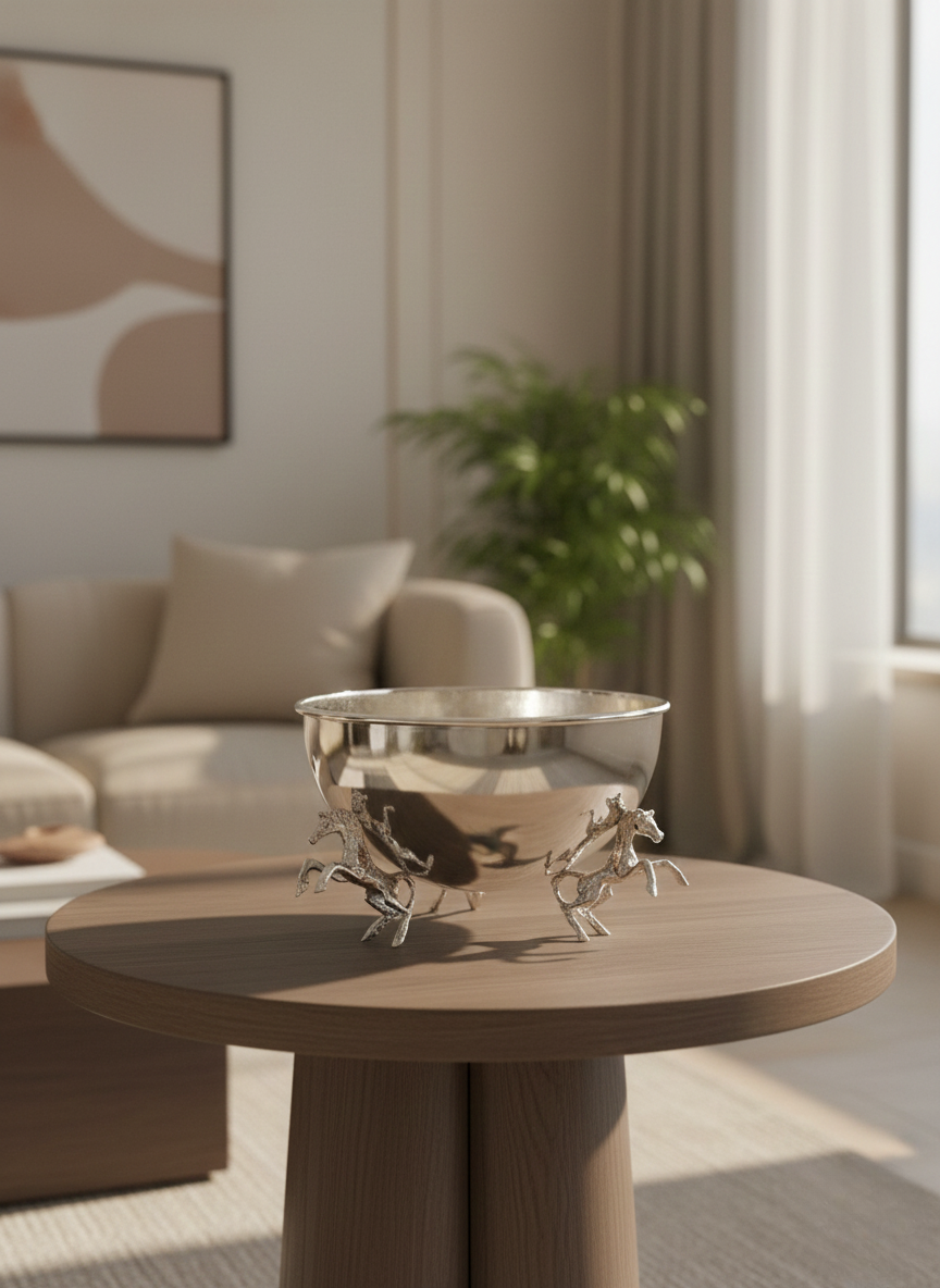 VAZO DEKOR GÜMÜŞ Kaplama Şaha Kalkan At Figürlü Dekoratif Sunum Kasesi ve VAZO